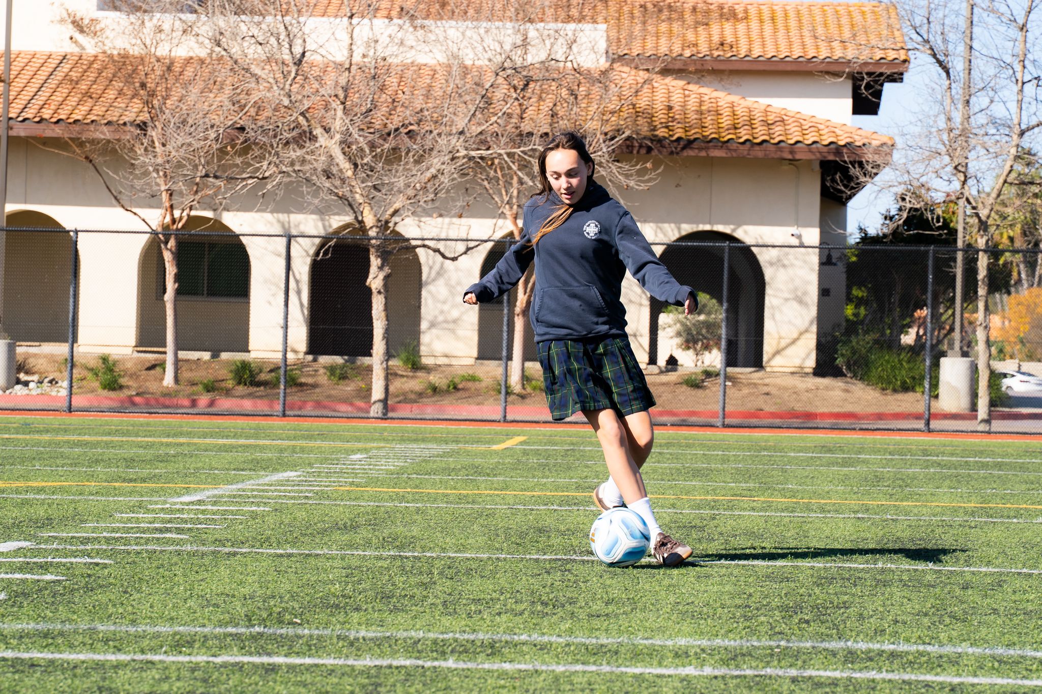 Most league games take place on weekday afternoons on our campus, utilizing our gymnasium and turf field.